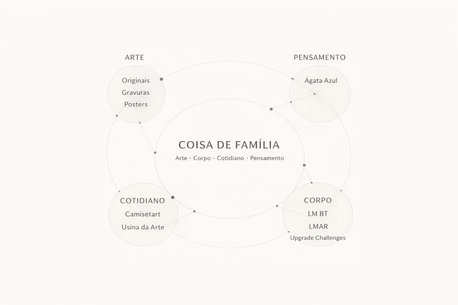 Cada frente do ecossistema ocupa um território próprio, mas todas fazem parte do mesmo fluxo criativo.